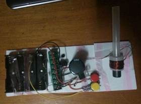 (1)使用方法:上面有红色和黄色两个按钮,将铁质弹丸放进炮管,按住黄色按钮不放,进行电容充电,持续按的时间将和射程有明显关系,但是也有上限,这个大概是两分钟,电容上最大电压220V,然后将炮管对准空旷地方,按红色按钮,弹丸以一定速度发射出去。