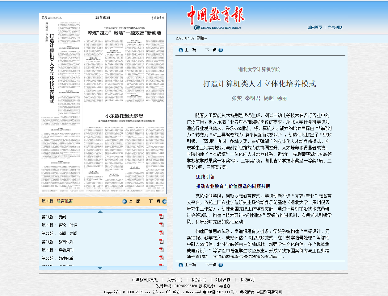 【中国教育报】爱游戏ayx中国官方网站:打造计算机类人才立体化培养模式