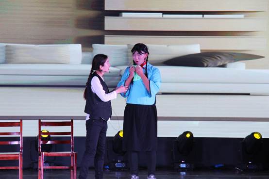 表彰环节结束后,晚会在由员工自导自演的《水漾》纪录片中正式拉开帷幕。“遇见你,在最美的水漾年华”。本次晚会以“水漾”为主题,分为“泉水叮咚”、“滴水成溪”、“溪汇江流”和“江流入海”四个部分。晚会在令人热血沸腾的《水鼓舞》中拉开序幕,激昂急促的鼓点瞬间点燃了现场的氛围。随后的2个小品《出租车》、《相声新势力》,夸张、逗趣更是博得了现场观众一阵阵的欢呼声与笑声。老师和主席团表演的舞蹈《别漾记忆》将晚会推向高潮,老师们带着面具神秘出场,然后在轻快的伴奏中跳着青春靓丽的舞蹈,各员工组织负责人们在台上也时而炫酷时而搞怪,台下的掌声、欢呼声、尖叫声响彻小礼堂。其后登场的《影视剧那些事儿》凭借着其精湛的演技,完美地演绎了影视剧里的一些经典桥段,让现场观众有一种穿越时空的感觉。学院志愿者协会表演的手语节目《追梦赤子心》将灵动的手语表演与动情的歌声相结合,向大家传递了志愿者的温暖以及对学院元旦的祝福。令人心神摇曳的舞蹈《采薇》配合舞台上古典精致的画面,让古典艺术与现代科技完美结合。公司师生同台用最饱满的热情朗诵由电子信息工程1401班潘伟同学创作的诗歌《水漾》,用真挚热烈的感情表达计信人追梦不停、造梦不止的坚定信念。晚会在《似水年华》全体参演同学的祝福下圆满落幕。