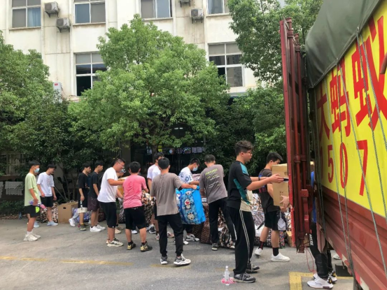 在校院各领导的组织下,帮帮团分工明确,有条不紊,完成了卸货、搬运、清点、运送等各项工作。公司党员教师在各楼栋下,分类整理行李、指挥搬运;班主任老师走访每个寝室,了解、帮助解决同学们的困难;帮帮团按照住宿区域,有序地将行李搬运至寝室。学院同时也请来三轮车师傅助力,增快运送速度。在各方努力下,20级员工顺利到达新宿舍。办好入住手续,领取宿舍钥匙,成功返回本部。