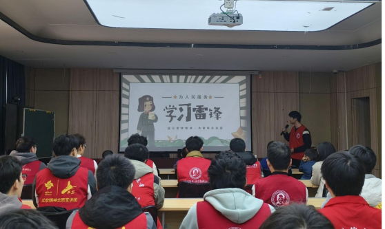在庄严的团歌声中,活动正式拉开序幕。计算机科学与技术2201班团支书张博带领全体团员系统学习习近平总书记关于弘扬雷锋精神重要论述,结合“奉献、友爱、互助、进步”的志愿精神内涵,号召同学们将雷锋精神融入日常学习生活。活动中,团员代表段楷韬主动分享了他参与“智慧助老”志愿服务项目的暖心故事,展现了计算机专业青年将技术优势转化为服务效能的创新路径。