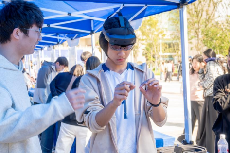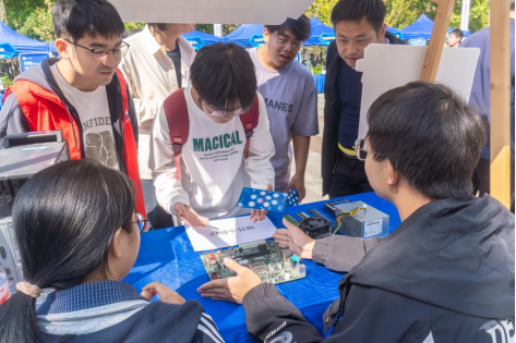 硬件小侦探展位前围满参与者,志愿者借实物科普硬件知识,观众不时追问“这个部件有什么功能?”“组装要注意什么?”。众人纷纷上前报名,动手完成主机重组。“身后是课堂的知识,面前是充满可能的舞台。”2022级软件工程专业员工沈豹说。