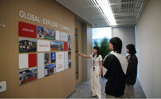 师生团队前往光谷飞速创新天地新园区。在企业负责人的带领下,全面了解企业文化和园区功能,深入走访研发中心和行政部门等办公区域,系统了解企业的发展规划、核心业务与人才需求等。